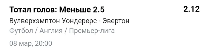 Вулвс Эвертон u2.5 1,64, то что взято по 2,12, в пинки по выходу, без доступа к любительским конторам, можно было взять по 1,79