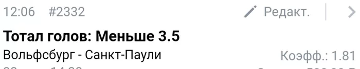 Вольфсбург СтПаули сейчас в пиннакле идёт 1,42