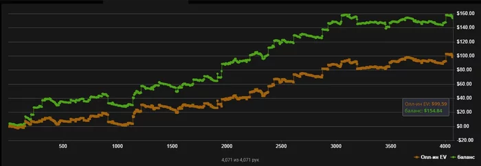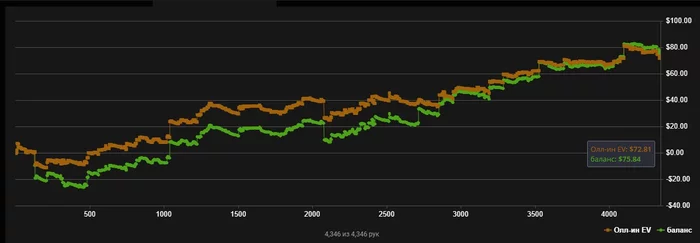 Вроде как по графику намного меньше профит, плюс он рейк не показывает. Как получается 92$?