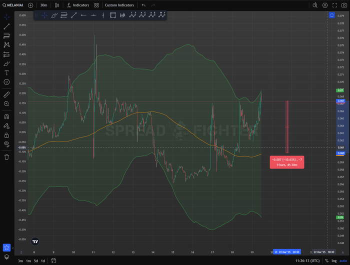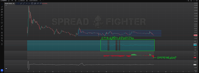 Берем спред MELANIAUSDT/TRUMPUSDT на возврат к средней:
