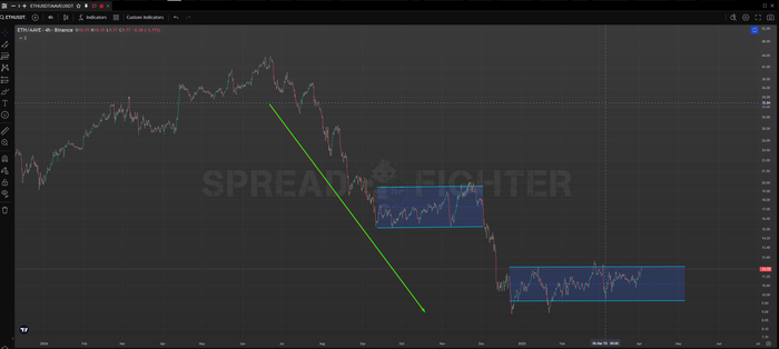 думаю, что прямо сейчас AAVE отстает от ETH исключительно из-за своей волатильности. Локально мы находимся в падающем рынке, и это естественно, когда более низколикивдная монета падает сильнее