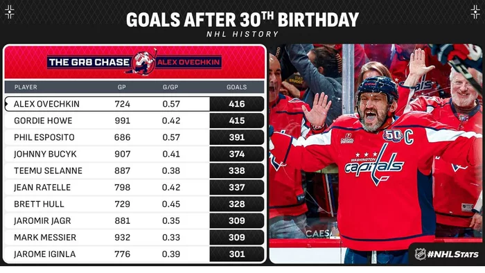 Сегодня ночью Овечкин в очередной раз отличился в НХЛ до рекорда всех времен осталось семь шайб. Ови это сделал в матче с Сан-Хосе Шаркс в активе у нападающего в этом сезоне 34 шайбы+21 голевая передача. До рекорда всех времен осталось 7 шайб.