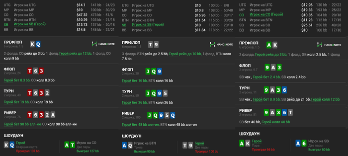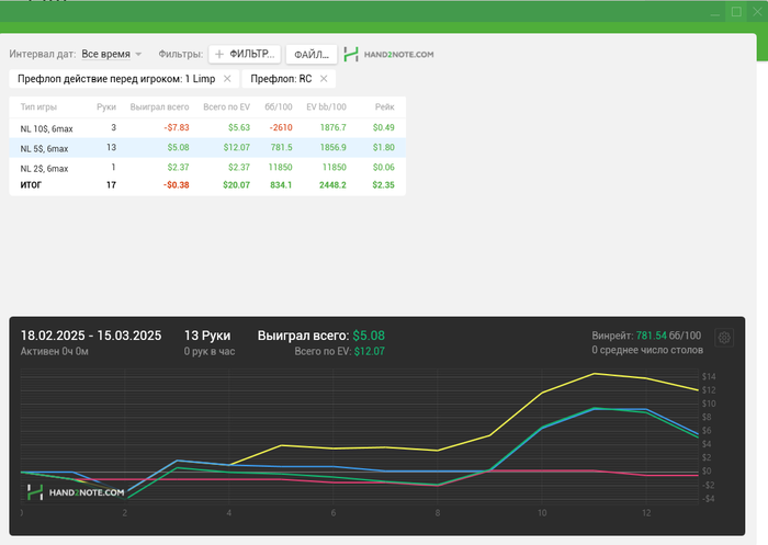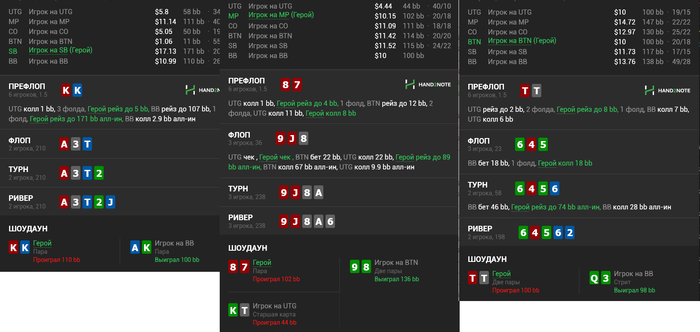 repbel666, Вот так получилось посмотреть, по рукам я колил только если есть фиш в раздаче. На самом деле действительно минусово выглядит, просто тут выборка удачная.