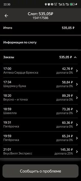 Доброго времени суток. Сегодня отработал курьером 4 часа 20 минут заработок составил 535 рублей
