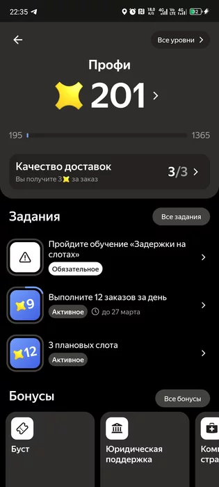 Яриксоло @ 19.03.25Доброго времени суток. Сегодня отработал пешим курьером 3 часа 56 минут заработал 755 рублей.