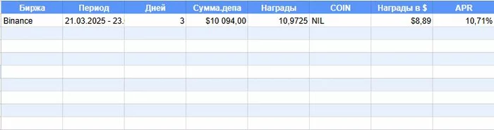1. Идете в раздел Лаунчпула на Binance 2. Замораживаете BNB, FDUSD или USDC на 3 дня 3. Получаете монеты NIL в качестве награды 4. В конце забираете свои активы + свеженькие NIL