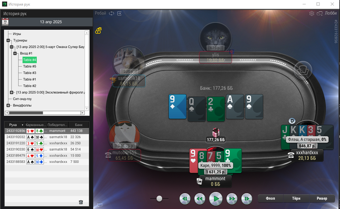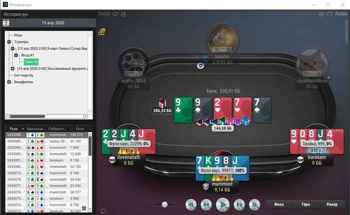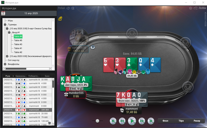 Сегодня показал альфа игру, вскрывали блефы, сами блефовали, разнос в холдем полный был.