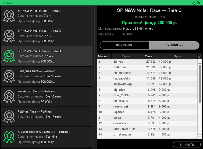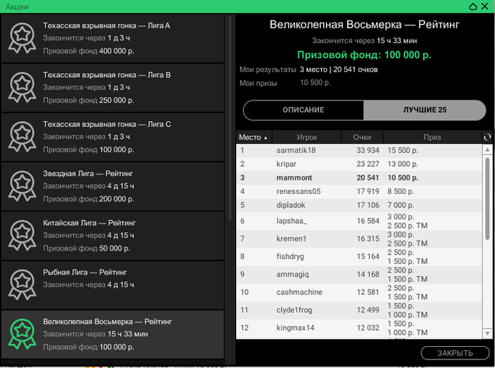 Планирую удержаться в лидерборде, но это сложно, сыграл около 400 за 250, выпало 3 раза 2500, раз 15 - 1250.
