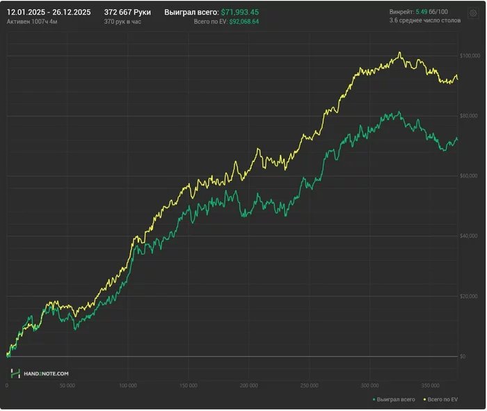П.С. В целом этот год получился чемпион по всему - лучший месяц, лучший год, больше всего раздач, лучший $/час - все это случилось со мной в 2025. Казалось бы простая мысль, идея, оформившаяся чуть меньше года назад, получила такое мощное материальное воплощение. Не чудеса ли это? Есть над чем подумать...