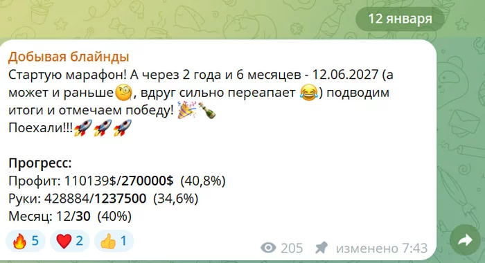 Сейчас иду вровень по времени и профиту, что делает общую цель марафона ещё более реальной и осязаемой: