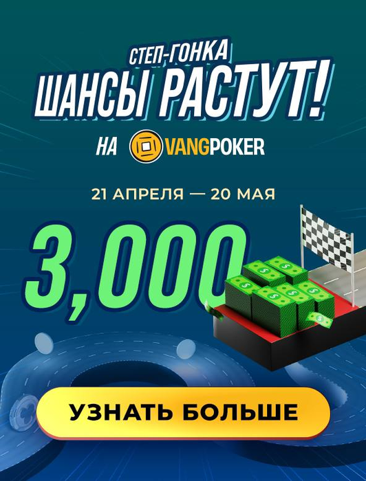 С 21 апреля по 20 мая на VangPoker пройдет степ-гонка "Шансы растут!" с призовым фондом 3,000: рассказываем об особенностях формата и возможностях выиграть денежные награды.