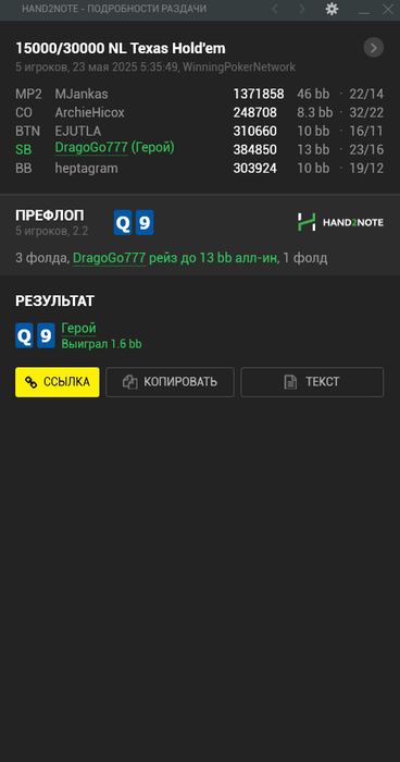 Сегодня была всего одна финалка, раздачу зацепил всего одну спорную