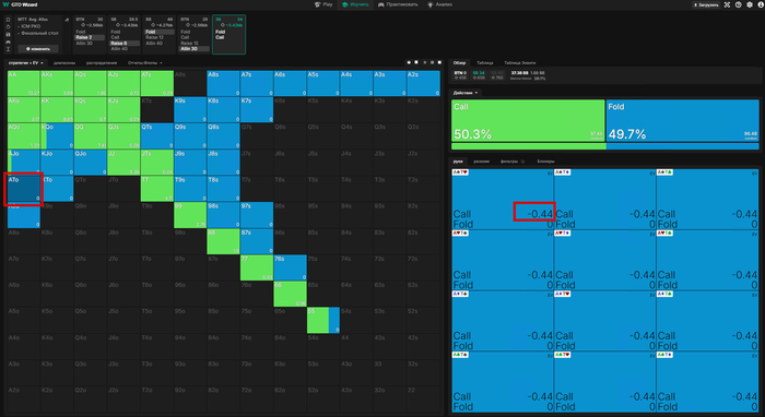 Как видим, наше решение пасс! колим от А9о, A7s, 44.