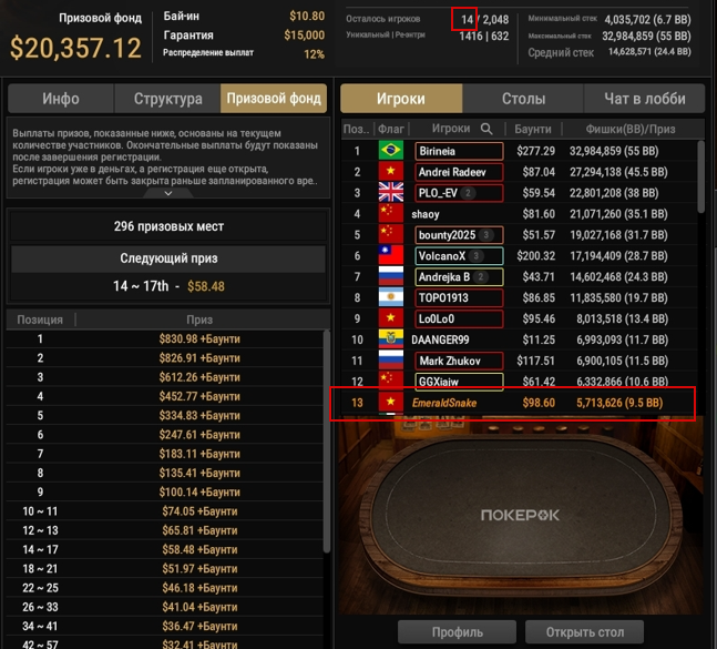 Давление призового скачка. Переход с места на место может означать разницу в сотнях или тысячах долларов. На баббле призов и на финалке это заставляет игроков играть либо слишком тайтово (из-за страха вылететь), либо слишком агрессивно (попытка подвинуть стек).