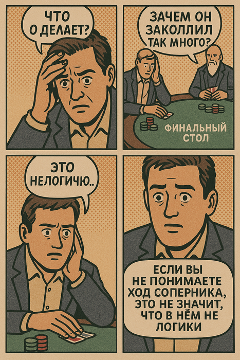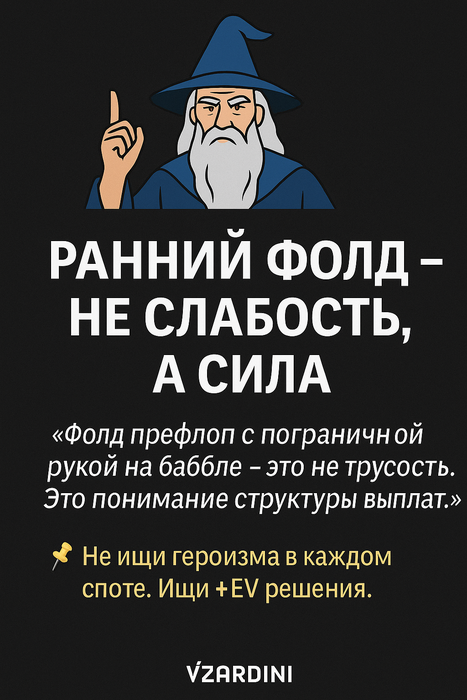 SB — мастер ICM-дисплин. Он видит твой стек и понимает: ты фолданешь даже неплохую руку, если не уверен, что впереди.