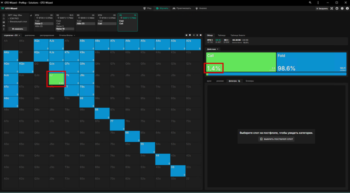 Вот диапазон закрытия после рэйза 10 бб, если в нас пухнул опенрейзер с Батона, 100%😎