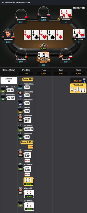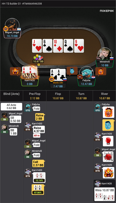 Почаще бы, конечно, такое видеть. Но ПокерОК такие подарки только в начале турнира обычно раздает.