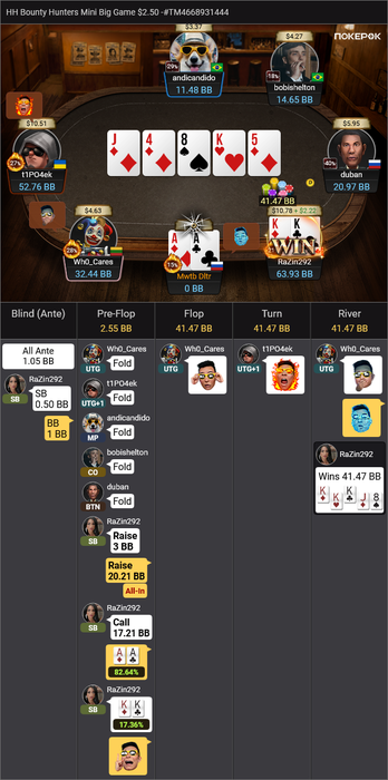 UPD И потом следующей раздаче еще один бесстрашный отдал свой стек: