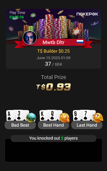 Пятничную сессию отыграл. 30 турниров, 5 ITM, 2 финалки: