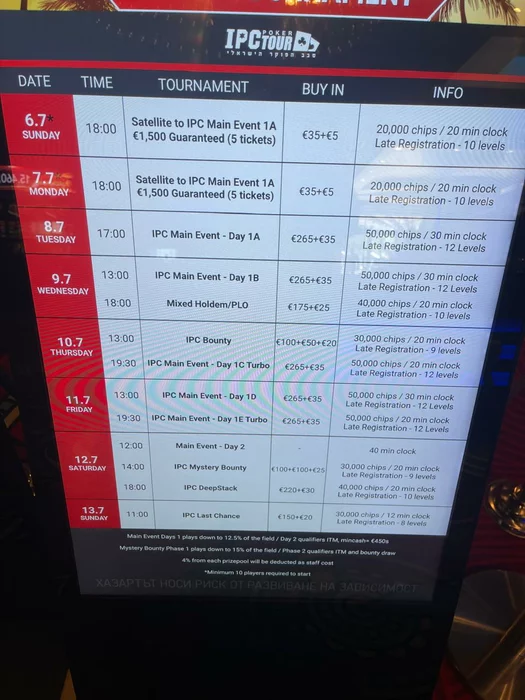 Скатался в небольшой отпуск в Болгарию, решил заодно написать как там покер на курортном месте Солнечный берег. Посмотрим плюсы и минусы. Мне в целом повезло, я застал там израильскую серию IPC с очень демократичными бай инами и слабыми составами.