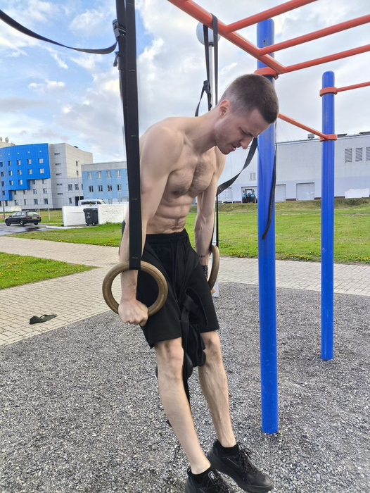 Сейчас, последние полгода после переезда в родной город, тренируюсь по программе друга. О ней расскажу как-нибудь в другой раз. Наличие свободного времени, спортивная площадка рядом с домом, помощь и поддержка друга делают своё дело. Но и главное — что есть желание. Пока что зафиксирую свой скромный прогресс за примерно полгода этими фото с сегодняшней тренировки. Сейчас при росте 180 вешу 65-66 кг.