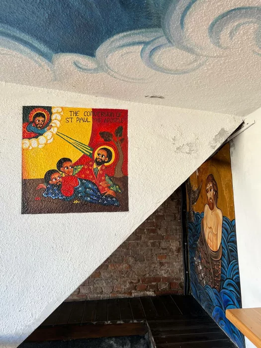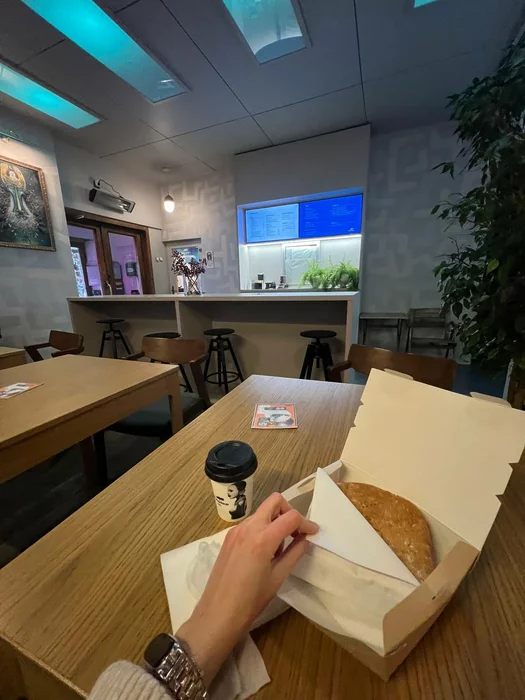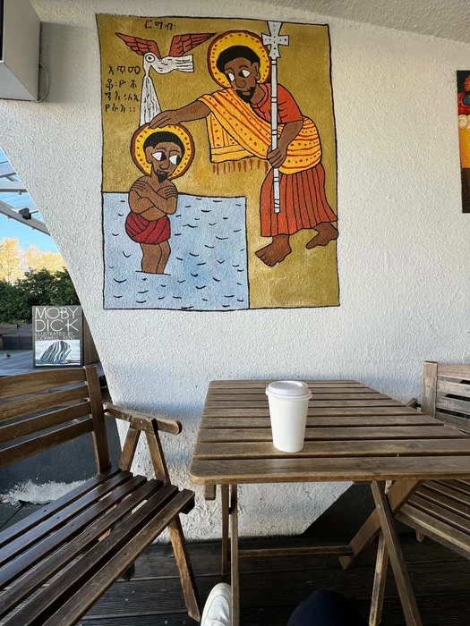 Крошечная кофейня расположилась на Октябрьской (между собой называем это место хиппи-районом - приезжайте и поймете, почему). На улице нас встречают иконы с черными иисусами, ну и в целом в кофейне витает некая гетто-атмосфера.
