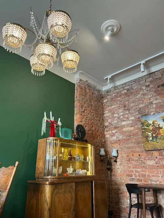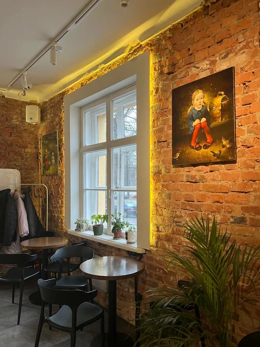 Находится в одноименном районе (а еще это недалеко от гостиницы Беларусь). Мимо точно не пройдете - во дворе стоит пианино в цветах, а на дереве висят хрустальные люстры. Внутри - кирпич, бабушкина мебель, хрусталь и картины с детьми на горшках. Что предлагают: классические (довольно инстаграмные) завтраки. Учтите, что заказ в пару блюд уже парализует кухню, поэтому ждать можно почти бесконечно (как Артём ждёт свой топ нок). Короче - мило, уютно и, если вам очень повезет, можно увидеть белку во дворе.
