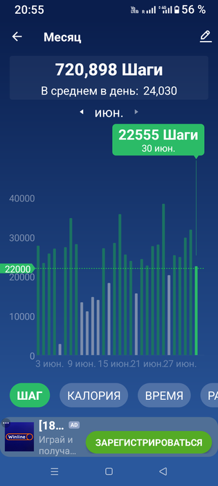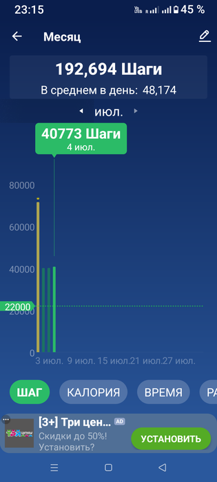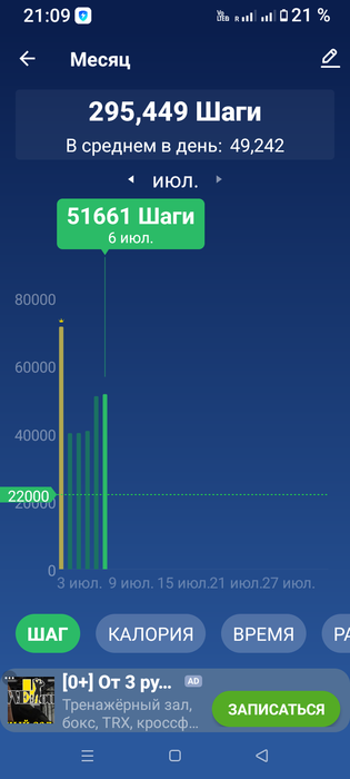 evgenyev777 @ 01.07.25kill1302, расскажи плз, как у тебя получается в обычный месяц нахаживать 25К шагов почти? Кажется, что это очень много и сильно выше обычного количества.