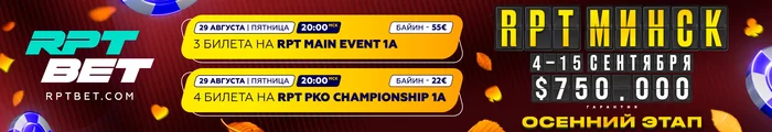Первые фрибаи и предфинальные сателлиты стартуют уже в будущий понедельник. Не упустите возможность отобраться в самый дорогой турнир осеннего этапа RPT!
