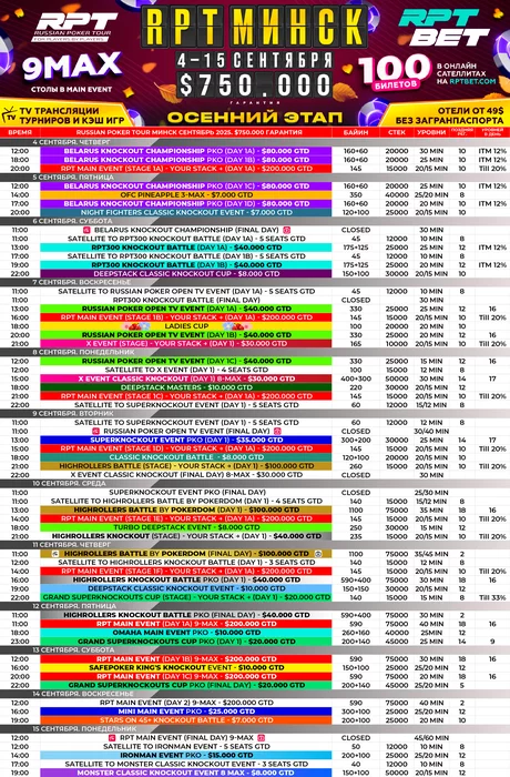 Итак, вы едете на серию RPT 4-15 сентября в Минске, но ваш бюджет всего $600-800. Когда и какие турниры лучше всего сыграть?