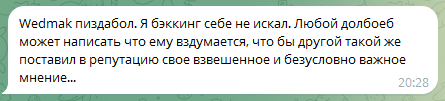 Добавлю от себя - я с тобой вежливо общался и ответил на заданный тобой вопрос что я об этом всем думаю. Вот за это "Горбатого мне не лепи, а?" - в нормальном разборе тебя бы уже посадили на жопу.