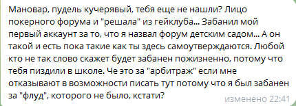 Wedmak @ 07.11.25в августе или сентябре этот гражданин ломился ко мне в личку тг под ником ILYA с попытками начать меня тренировать (хз с чего - ибо я не играю в омаху), а потом чтобы взять денег на бэкинг (пришел из чата покерка, где я развлекался троллингом админов), после ник поменялся на ПроБро, а когда я уточнил: не он ли герой этой темы - был им заблокирован в ТГ. сейчас даже не знаю какой у него ник, наверное опять сменил.