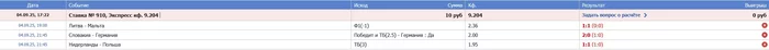 Литва сыграла в ничью с Мальтой, лесенки сгорели, оставшиеся 2 матча на сегодня отлетели, т.к. расклады по ним поменялись. Завтра подведу результаты и отберу новые матчи.