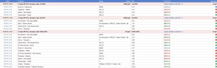 приветствую! да пока вообще без проигрышей, но они будут обязательно ;) акцент на единственный фактор, весь белый шум в мусор) только движение коэффициентов в букмекерской линии. Первоначально отбираю матчи после 13-00 и проставляю экспрессы , системы и лесенки прематч, затем непосредственно смотрю кф перед началом матча и принимаю решение ставить уже на этот матч или нет.