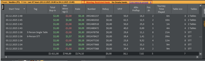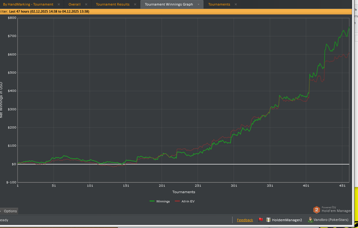 Сейчас чуть поменял план и уже стараюсь играть без 5ок. 588 турниров за 23 часа - из за количества спинго макс, тут опять же набор в снг есть только ночью. Пока чипЕВ хорошее (делю на 2) тк стек 1000 вместе 500 обычных пока играем и разбираемся.
