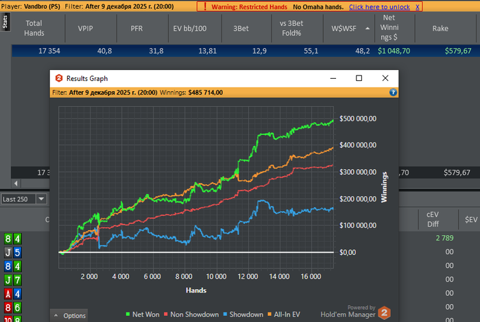 Договорились с беккером, что поиграем до 24го, 250 закинул, 200 через пару дней и цель выйти рассчитаться по долям. 24го с БР от 700, Просто играть 10тки намного выгоднее, это и так знал, но уверенность что бью игру вернулась.