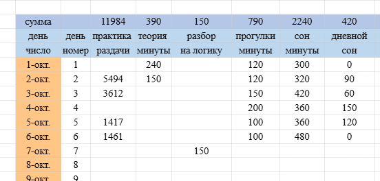 очень много обязательных домашних дел появилось, поэтому пока как-то так. план не работает, но это нормально, всегда первые 2-3 месяца так получается. даже не расстраиваюсь по этому вопросу. был 7ми часовой выхлоп спорта и это радует. немного побаливает плечо, но это из-за непривычки. жду пока супер врач с больничного выйдет, чтобы разобраться с болью в ноге. на данный момент это супер важно. раздачки сама не разбирала, накопилось много. сегодня или завтра скорее всего начну изучать новую тему.