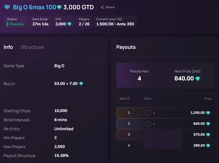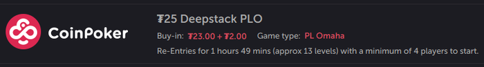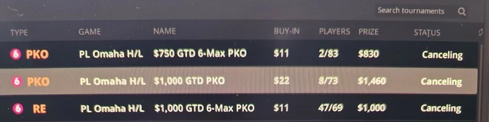 Зарегистрировался в турнир по омахе за 25, он отменился.