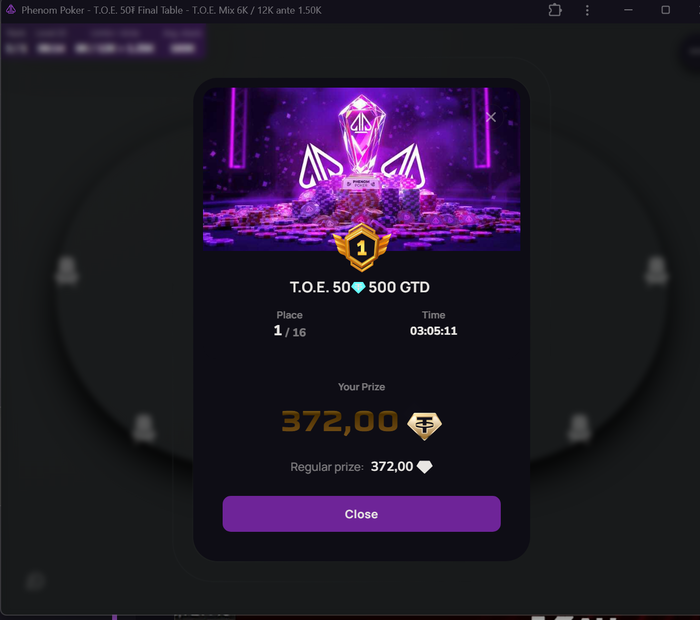 Победил в этом турнире на терпении (структура роста бринг-ина не быстрая, но мне как раз не нравятся всякие турбо форматы) 😤