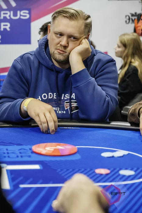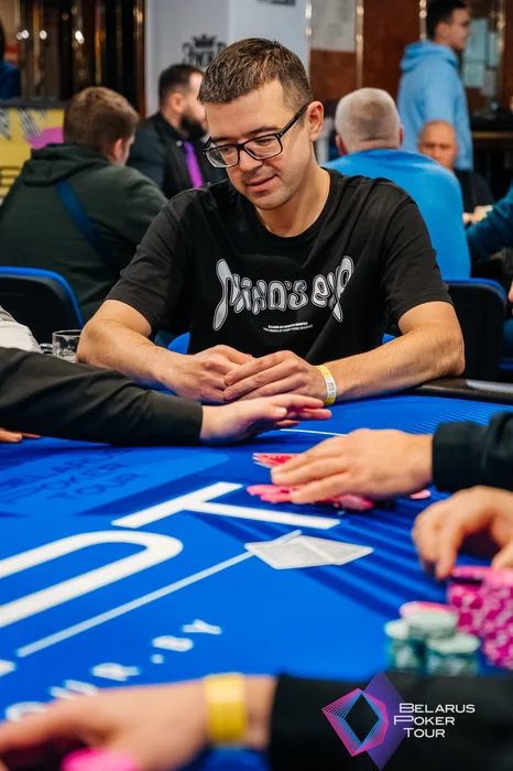 Первым с финального стола ушел Артем Дубовик. Две раздачи подряд ставил олл-ин: первый раз собрал блайнды, второй раз поехал против чиплидера.