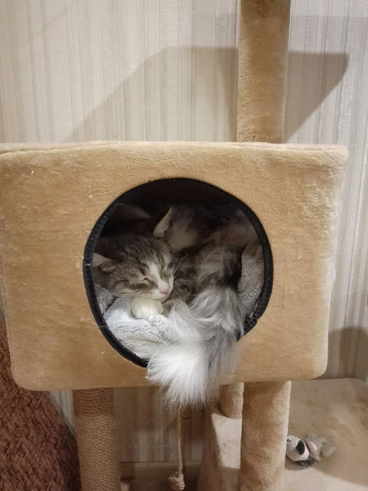 Максимка уже заценил новый домик, там тепло и уютно, а то у нас похолодало резко, сегодня минус 21((
