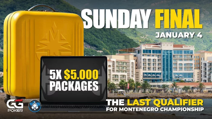 Это финальный отбор. На GGPoker начинается последний воскресный финал перед стартом Montenegro Championship. До серии осталась всего неделя: это ваш последний шанс забрать полный пакет за €5.000 и обеспечить себе бай-ины и проживание в отеле Splendid.
