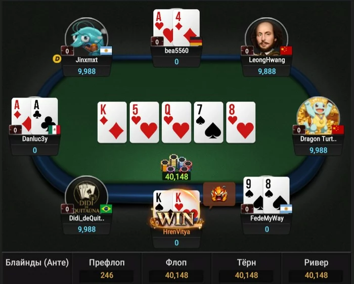 Darya_Kurt, ну я отношу себя к продвинутым фишам) У меня долгие отношения с покером разной степени серьезности. Думаю миллион раздач за все года я точно сыграл.