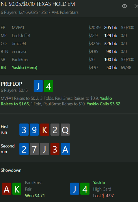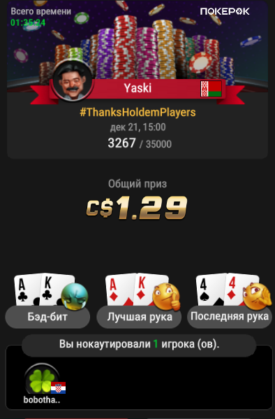 Что касается игры. Играл фриролл от ПокерСвап. Выиграть не удалось, вылетел примерно на 1000 месте. Играю кэш и другие форматы. Удобные форматы на ПокерКе это All In Or Fold - но нужен хороший стек, минималка там 1 доллар и нужно несколько сотен чтобы играть. Также хорошие быстрые турниры - можно фиксировать максимальный проигрыш и фокусироваться в игре достаточно короткое время.