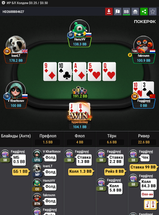 Начинающие регуляры не знают как играть против любителей, очень важно делать жирные свинские доборы на риверах, вот ещ один пример Alfa-добора