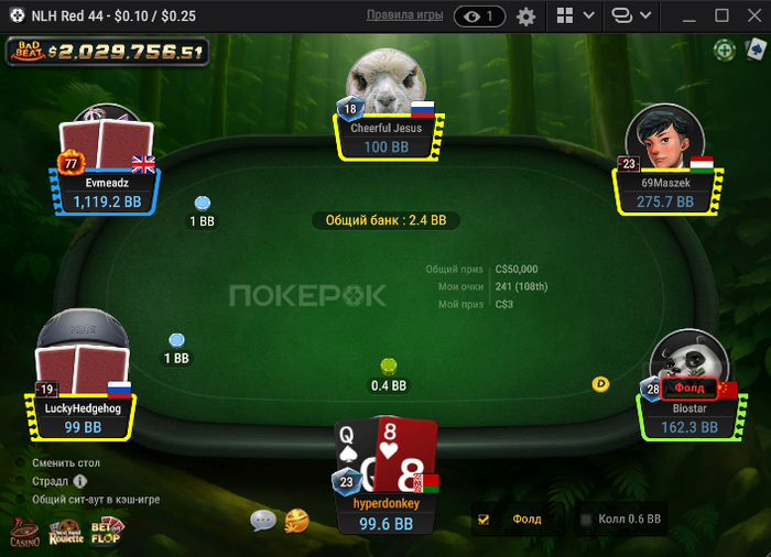 Vladislav2781, омега добор, когда ты поставил бы в этой ситуации пот Бет 10 бб и после отыграных 10к в минус думал, что это все диспа