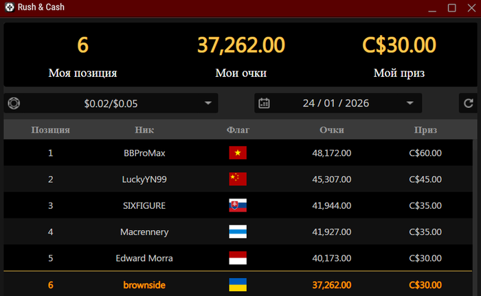 Откатал 21к рук, занял 6 место, сегодня не боролся за топ1-топ2 - случайно уснул на 3 часа.
