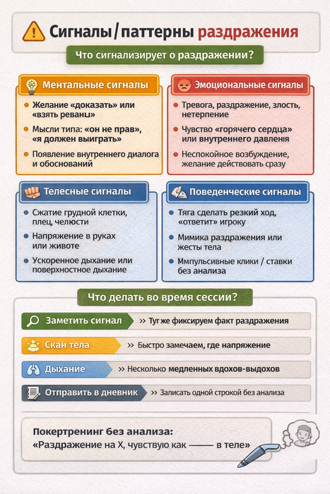 1. Эмоциональная дистанция. В жизни практикую абстрагирование от ситуации и взгляд на неё как будто с 10 метров над землёй. Обычно с высоты никакой трагедии не происходит) В покере такое не практиковал. Повод попробовать.
