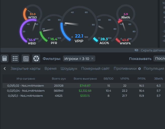 gammaray, у тебя есть чему по учиться, даже со схожими статами, раз винрейт около десяти. Где то слышал, что нл50 тоже микролимитом считается) ты какой лимит играешь в основном?