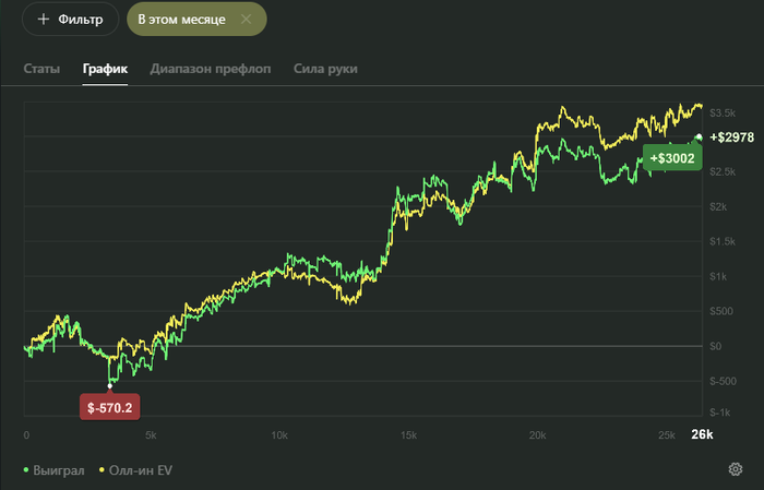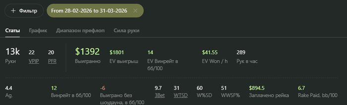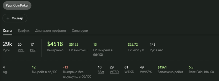 Где-то с января моя основная загрузка приходилась на коин. Там, на удивление, начала собираться очень хорошая игра, было много любителей 70+ впипа по ночам. Но очередное вмешательство эффективных менеджеров всё испортило, выкатив прекрасное обновление - лобби кривое, софт сырой и рейк стал огромным. Так что я пока пересмотрел своё присутсвие в этом руме, надеюсь они его всё таки допилят, но даже 100% рб для меня не выглядит привлекательным в таких условиях. Вот то, что я умудрился населектить на старом коине, помянем)